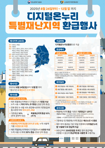 2025년 8월 24일부터 12월 말까지, 특별재난지역으로 지정된 49개 지역에서는