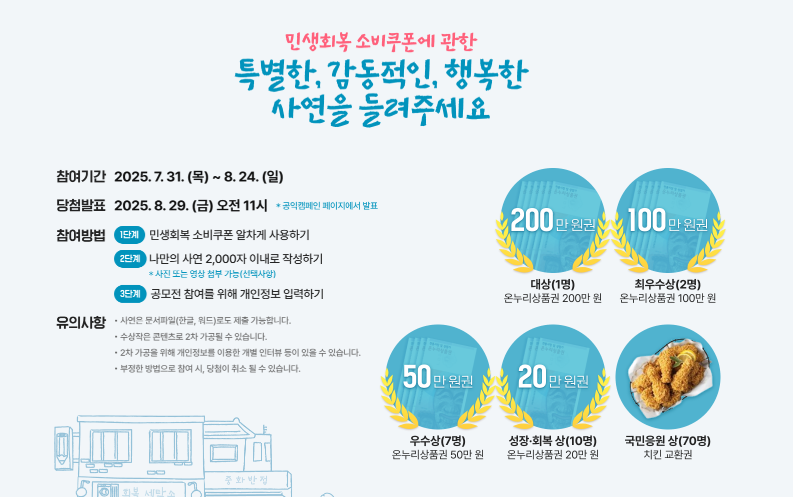 민생회복소비쿠폰 감동사연 접수중 | 민생회복소비쿠폰 공모전 대상은 상금 200만 원!