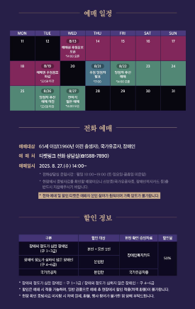 - 예매 대상: 만 65세 이상(1960년 이전 출생자), 국가유공자, 장애인
