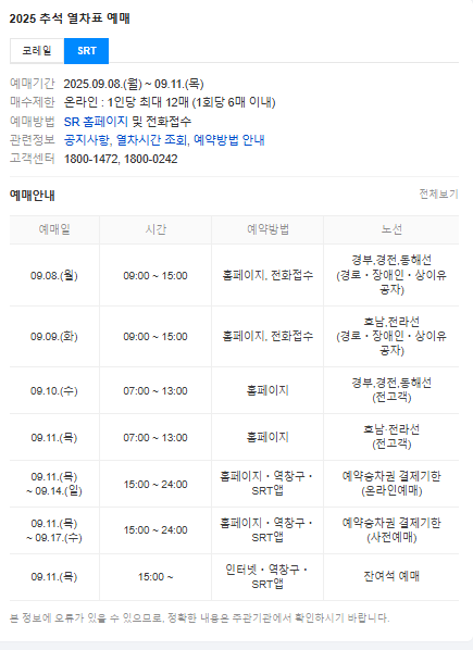 - 🎫 SRT 2025 추석 열차표 예매 일정 상세정리